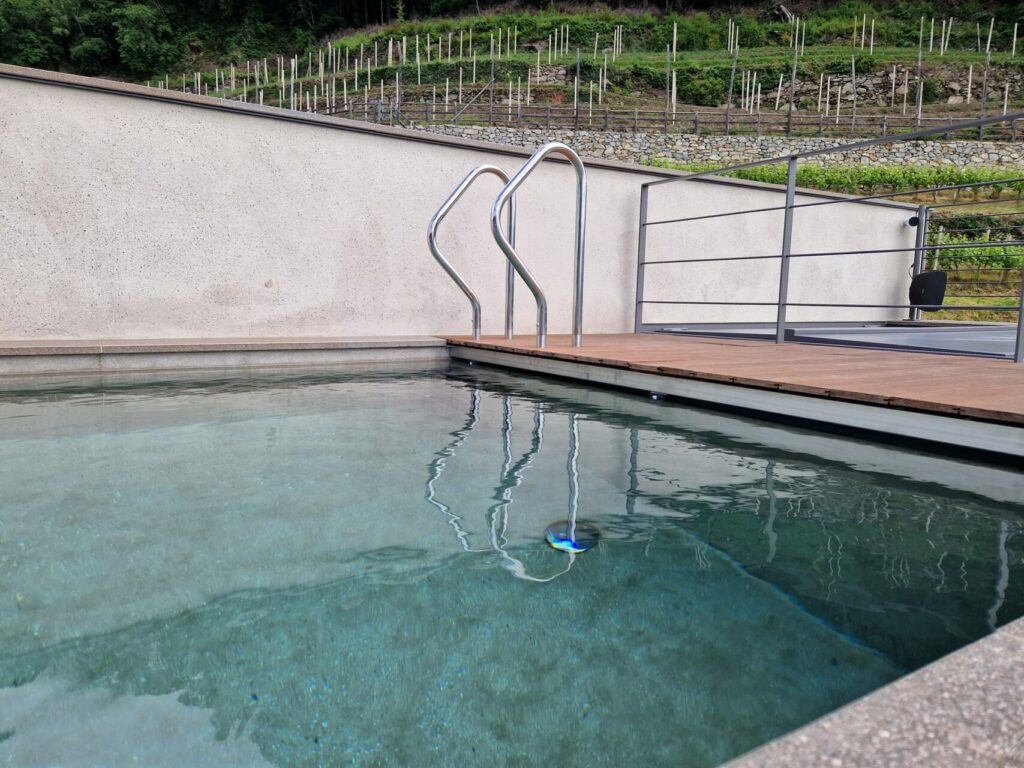 La copertura del vano è costituita da una struttura in acciaio inox resistente alla corrosione, composta da più travi portanti con staffe di supporto e una griglia in legno rimovibile posta sopra. La nostra struttura in acciaio portante richiede solo 60 mm di altezza e consente di posizionare la griglia in legno allo stesso livello del bordo piscina, nel caso di piscine con skimmer.